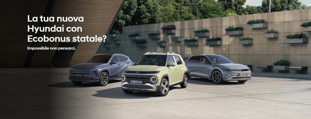 Stai provando a non pensare all’Ecobonus? Impossibile non pensarci, con i vantaggi Hyundai. È arrivato il momento giusto per scegliere la tua nuova Hyundai elettrica. Pensaci, non troppo però!